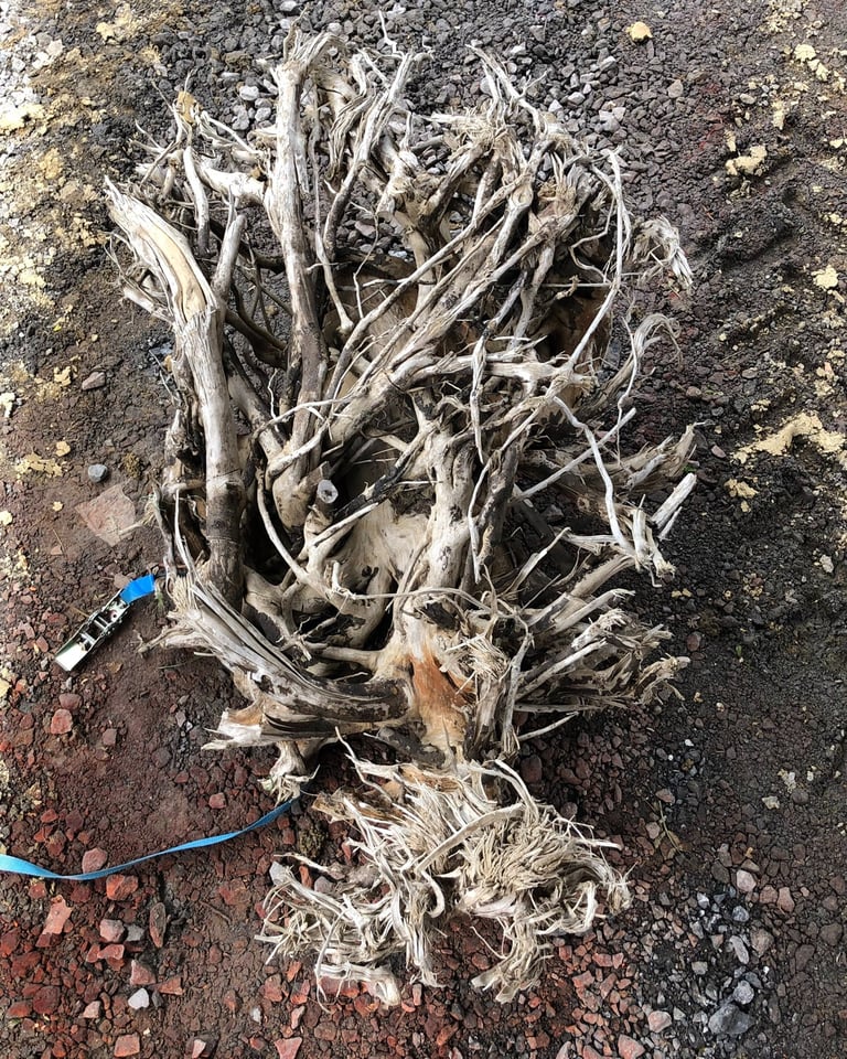 Coprs et manche en if, touche en bois flotté, sillet et chevalet en lime ancienne, frettes de sitar, vibrato, plaque en zinc