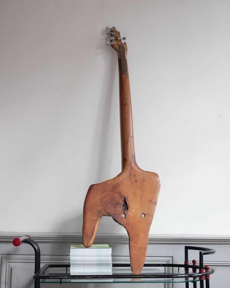 Tête en faucille, sillet en collier de serrage et defense de sanglier. Corps en if, touche en chêne, chevalet en os de sanglier, mécaniques forgées et bonne partie du montage réalisé par Forge de Pelen
